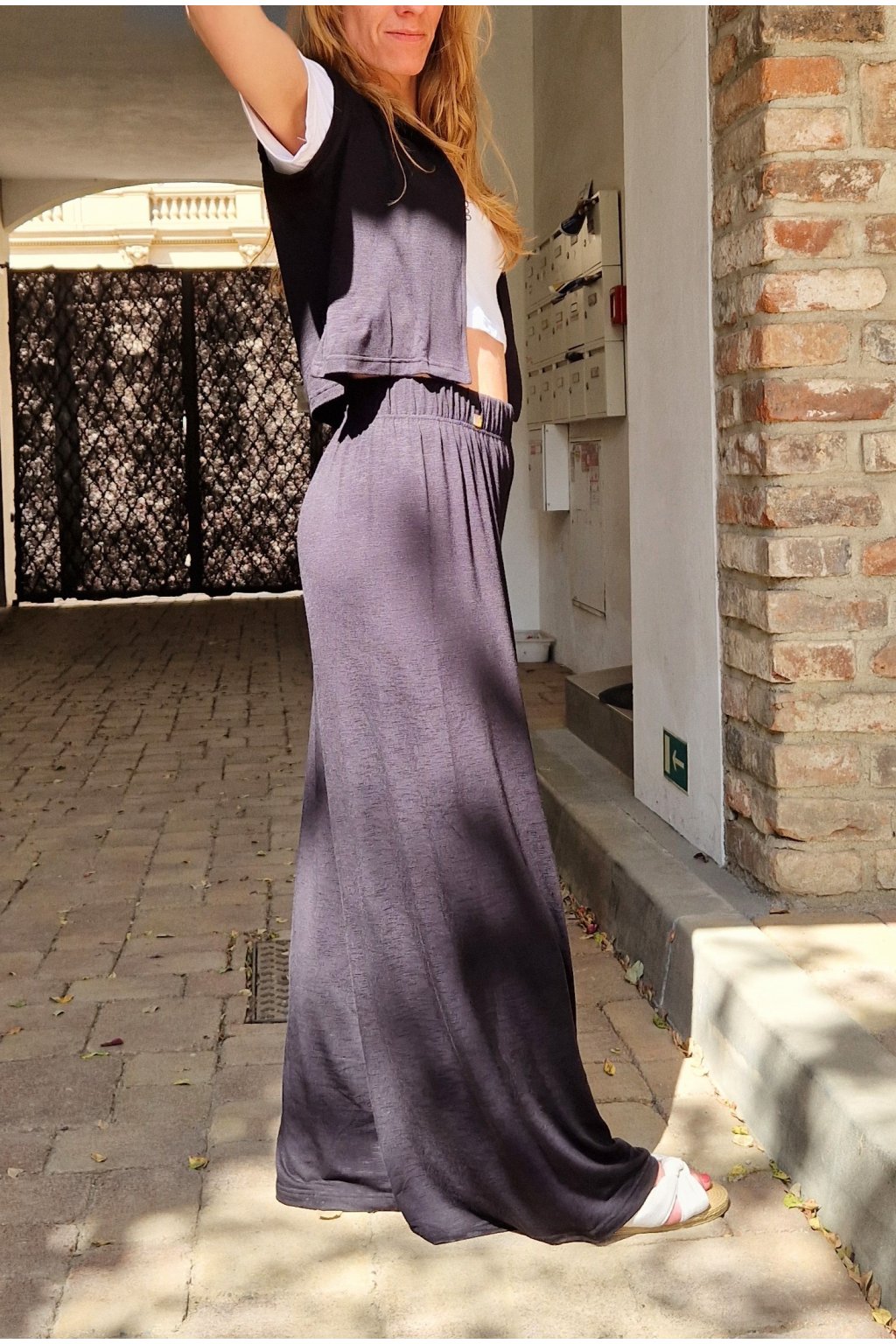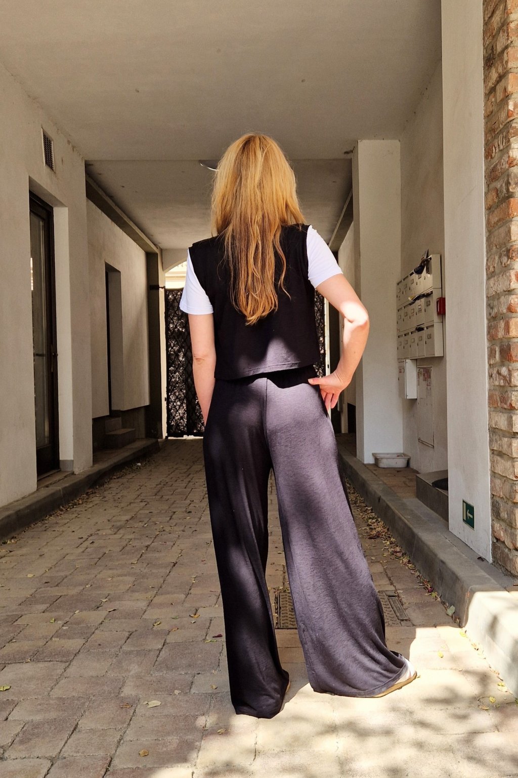 Set Lamia se skládá z volných kalhot a kratší vestičky